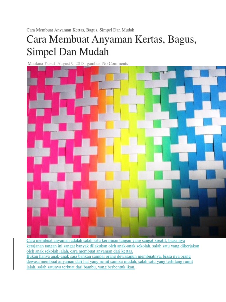 Dua lembar kertas asturo atau kertas manila yang berbeda warna, tentunya sesuai selera warnamu. Bahan yang diperlukan untuk membuat anyaman kertas, diantaranya adalah: Sebagai langkah awal, anda bisa mulai belajar menganyam dengan benang sepanjang 30 cm. Mapel sbk kelas viii mts. Langkah pertama yang perlu disiapkan adalah kertas dua warna, kemudian cutter, kemudian lidi.